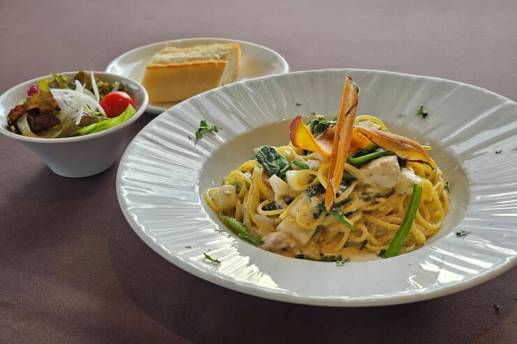 冬にピッタリの熱々焼きうどんと、上品な鰆のクリームパスタです。