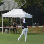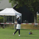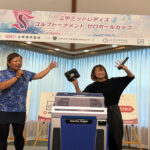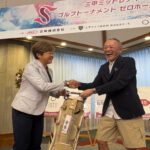また、初日と2日目のプレー後には恒例となりましたニアピン大会・ドラコン大会が開催されました。ニアピン大会では、初日は菅沼恭子プロが20㎝、2日目には北島順子プロが45㎝でそれぞれ優勝されました。ドラコン大会では、初日は兼岩美奈プロが263ヤード、2日目には川久保百代プロが240ヤードでそれぞれ優勝されました。1球勝負の中、安定したショットを披露し大会を大いに盛り上げてくれました。