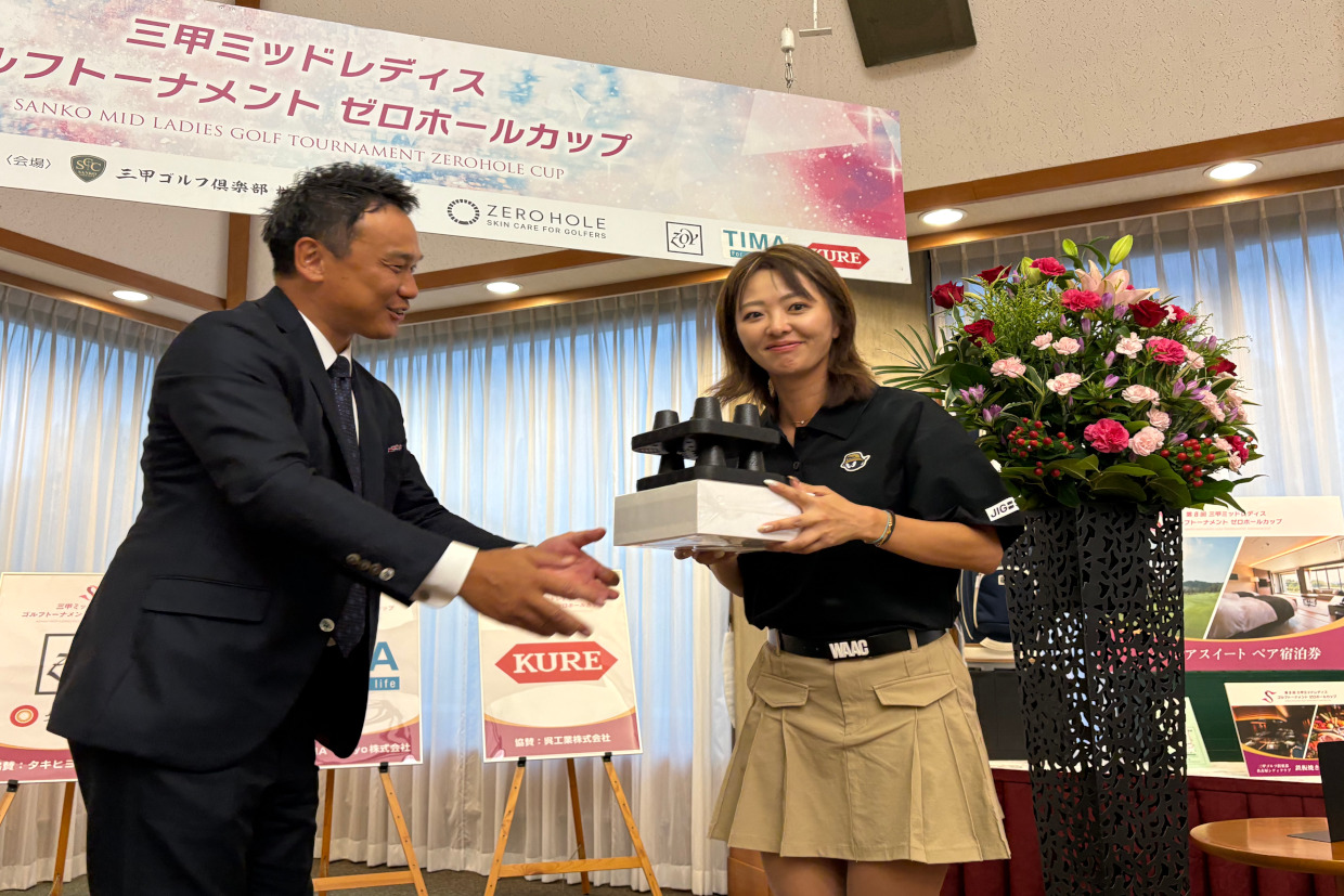 このような素晴らしい大会を開催いただき、大会関係者の方々に大変感謝申し上げます。コースコンディションも素晴らしく、特にグリーンがこの夏場にこれほどの状態で仕上がっていることに驚きました。コース管理の方々にも改めて感謝申し上げます。今大会には初めて出場させていただき、まさか優勝できるなんて思ってもいませんでした。山本薫里プロがいいゴルフをされていたので、焦りもありましたが、なんとか優勝できて大変嬉しく思いますし、自信にも繋がりました。来年も呼んでいただけるようこれからも頑張っていきます。本当にありがとうございました。